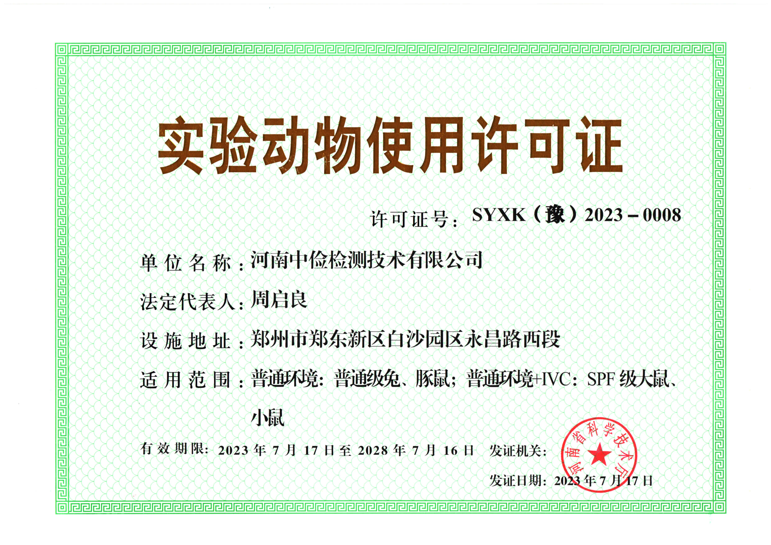 - 喜報(bào)!河南中儉檢測取得新的實(shí)驗(yàn)動物使用許可證!